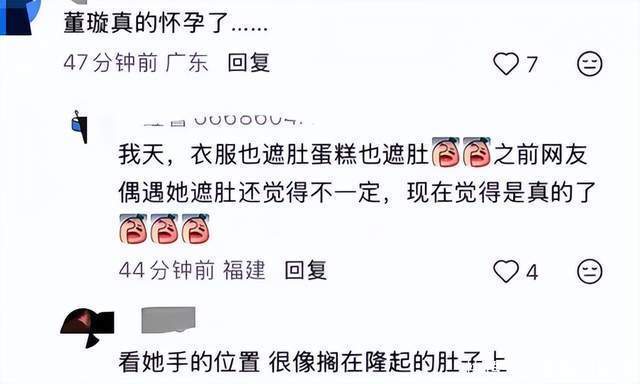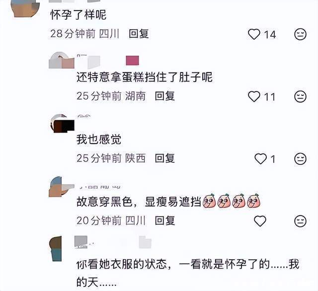 有网友留言问:怀孕了呢?也有网友表示:还特意拿蛋糕遮住了肚子呢。