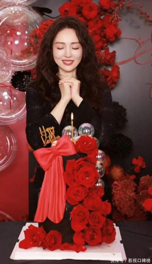 生日会现场布置是以红色为主题,热闹又神秘。董璇穿着黑色裙子,留着一头波浪卷发,化着精致的妆容,女人味十足,她对镜头笑容满脸。
