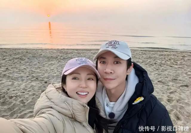 张维伊留着一头短发,穿着黑色皮衣。这样的打扮感觉他挺帅气的。董璇挽着张维伊手臂一起合照,一脸幸福。